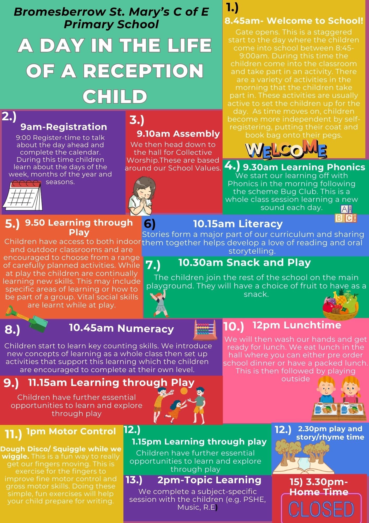 3) Joining school letter. This gives you all the essential transition days for starting school and will be released on the website and sent out to you via post/email in April of each year. Watch this space for further information!